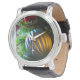 Uhr, Vintage Männeruhr mit schwarzem Lederarmband