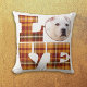 Schöne Herbstfarben prägen dieses Orange Red Brown Karierte Liebe Sprichwort Foto Kissen Kissen. Das Wort "LIEBE" sticht in einem kühlen Schriftart mit einem karierten Muster hervor. Ein Foto ersetzt das "O" und kann ein Haustier, ein Paar, ein Kind usw. sein. Die Rückseite des Kopfkissens ermöglicht die Anpassung von Texten. Fotografie und Design ©Vann-Horn Creative Foto & Designs.