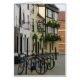 Ein Stall der fleißigen Fahrräder wartet geduldig auf ihre Inhaber, um aus dem Bauers-Armpub und -pedal heraus zurück zu Arbeit im Herzen von Worcester, England zu treten.