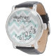 Personalisiertes aquamarines, graues und weißes Zickzack Muster. Wie auch immer, ich komme sowieso zu spät. Es ist lustig und cool. Geeignete Designanfrage angenommen. Klicken Sie unten auf den Link "Den Designer frag".