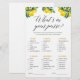 Machen Sie sich bereit, Ihrem Sommer- oder Frühlingssommer-Brautparty eine Touch Eleganz hinzuzufügen. Diese anpassbare Polterabend-Spielkarte mit atemberaubenden, handbemalten Wasserfarben und eleganter Kalligraphie macht sie zum perfekten Begleiter für Ihre Feier.