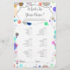 Doble-Seite Baby Dusche Spiel. Eine Seite ist "Was ist in deinem Telefon?" und die Rückseite ist "Was ist in deiner Handtasche?" Diese Babydusche-Spielkarte bietet einen modernen Schriftart auf vielfarbigem Punktehintergrund, ideal für einen kleinen Jungen, ein kleines Mädchen oder eine Überraschung! Benutzen Sie diese Karte für Ihr Party.