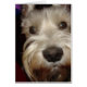 Auf dieser Karte befindet sich ein kleiner, weißer Miniaturschnauzer. Er guckt direkt in die Kamera und fragt sich, was Sie tun. Dieser Knopf ist perfekt für Hunde Liebe und Mini Liebhaber vor allem!