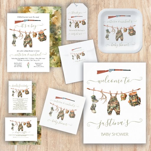 aquarellclotheslinmodernbabypartybabybücherbuch anstelle von kartejagdcamouflagekleiner jäger