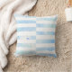 "Beach Modern Watercolor Wash Stripe Blue n White Throw Kissen." Ein wunderbar texturales Aqua zu himmelblauen Aquarellspülungen, breite Streifen Muster hat ein gewagtes Offset-Design für eine zeitgenössische Drehung. Kunst von international lizenzierter Künstlerin und Designerin, Audrey Jeanne Roberts, Copyright.