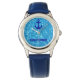 Kinderuhr aus Edelstahl mit blauem Lederarmband