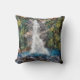 Eine Wasserfall-Szene aus der Wollnadel, die Kunst einer originellen Schöpfung. Die Rückseite des Kissens ist eine ozeanblaue Farbe.