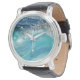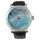 Wasserfarbe Blau Weißer Ozean Wave Benutzerdefinie Armbanduhr