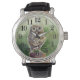 Uhr, Vintage Männeruhr mit schwarzem Lederarmband