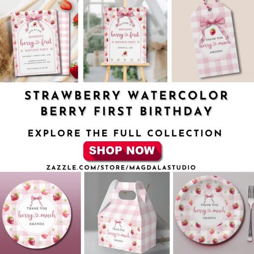 Strawberry Watercolor Berry First BirthdayDesignt von Magdaline Annie Martin Oming