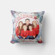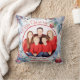 Eine hübsche Szene von einem Winterwunderland aus Schnee und Kiefern mit einem "Frohen Weihnachten" Gruß. Dieses von Kiefern, Beeren, Weihnachtsblättern und Grünpflanzen gesäumte Kissen ermöglicht ein Foto und eine individuelle Gestaltung des gesamten Textes. Fügen Sie Ihrer Weihnachtsdekoration in dieser festlichen Saison eine persönliche Touch hinzu.