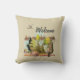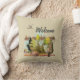 Herzlich willkommen! Schönes Aquarelldesign mit Waldtieren. Der Text lautet "Willkommen". Schöne Naturfarben inklusive Bräune, Grün, Blau und Gelb.