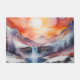 Wasserfarbe schneebedeckte Berge bei Sonnenunterga Fußmatte