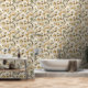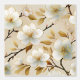Weiße Blütenblüten mit japanischer Kirsche, in Gold auf massivem Cremeuntergrund umrissen.
