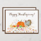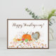 Die Herbstblätter umschließen das Herzstück dieses klassischen Watercolor Happy Thanksgiving Pumpkin With Turkey. Eine schöne Art, Verwandten und Freunden Grüße anzubieten. Die Rückseite der Karte ist einfach anpassbar, und die Farbe von Schriftart und Schriftart kann geändert werden, um der Botschaft zu entsprechen.