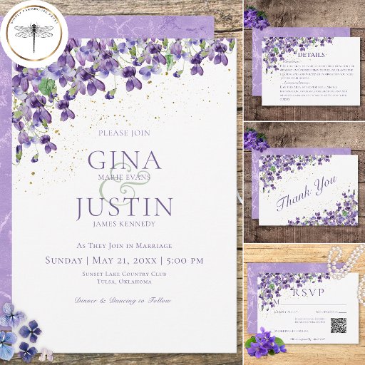 Rustic Purple Violets Gold Sparkle Wedding SuiteDesignt von Kathe Santillo