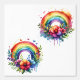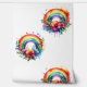 Fröhliche Aquarellfarben-Blume und Regenbögen kleben an der Abziehwand. Rotes, lila, gelbes, grünes, orangefarbenes und blaues Muster.