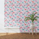 Einzigartiges aquamarines Grün, heiß rosa, rot-weiße Aquarellvogel und Wildblume Muster. Originelle Kunst von Nic Squirrell.