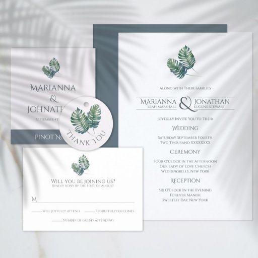 Watercolor Palms and Slate WeddingDesignt von Cat Manzione