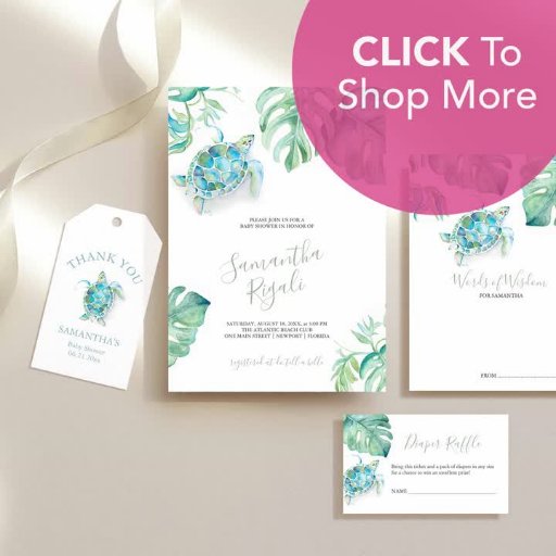 Sea Turtle and Monstera Leaves Baby ShowersDesignt von Victoria Grigaliunas