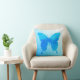 Ein Single, ein großer Schmetterling in Aquarelltönen in sanften Kobalttönen, Türkis und Himmelblau auf einem pastellfarbenen Gradienten werfen Kissen