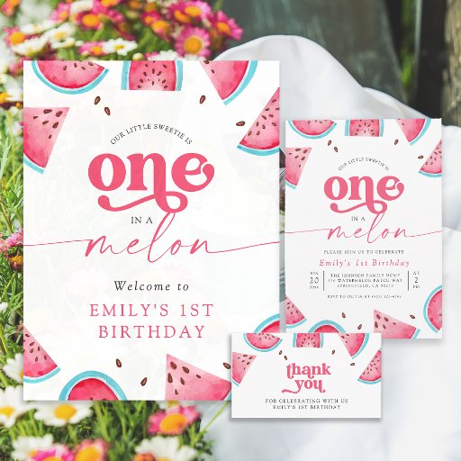 Feiern Sie den ersten Meilenstein Ihres Liebsten mit einem herrlichen Sommersüßensturm!Dieses Watermelon-Design verwandelt Ihr Party in ein wunderbares Wunderland. Sie können den Namen, das Alter und das Party Ihres Kindes einfach hinzufügen und so eine einmalige Einladung kreieren, die den Ton für Ihre Feier perfekt Set. Genießen Sie die Zauber der Saison und lassen Sie Ihren Geburtstag mit Wassermelone zu einem unvergesslichen Erlebnis.