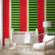 Diese Tapete ist ein Übergangsstück zwischen den roten Watermelon- und den grünen Watermelon Stripe Tapeten. Jede Kante dieses Produkts wird horizontal mit den beiden anderen Designs kombiniert. Es ist auch eine ideale untere Grenze zwischen einer roten Wassermelonenwand und dem Baseboard.