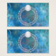 Ein verzierter, stilisierter silberner filigraner Ring mit bewölkten Perlen und Set mit einem Single runden weißen Edelstein mit einem Stern Blick aus seinen Tiefen, Set vor einem Hintergrund von wasserblauen Fraktalen.
