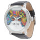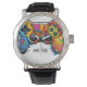 Uhr, Vintage Männeruhr mit schwarzem Lederarmband