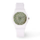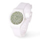 Häkelmuster in der Runde. Verschiedene Grüntöne als Hintergrund und weiß wie die Spiralarme, die von der Mitte ausstrahlen. Die Zahlen sind weiß mit Schlagschatten und sitzen ungefähr auf den weißen Spiralarmen. ***Teil des koordinierten Set bkmAN1c
