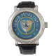 Uhr, Vintage Männeruhr mit schwarzem Lederarmband