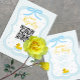 Baby blue gingham baby shower with a hand drawn bow. Water droplets frame a rubber duck surrounded by bubbles