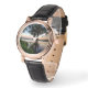 Uhr, Vintage Männeruhr mit schwarzem Lederarmband
