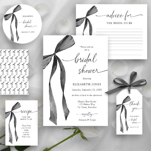 Introducing our stunning Watercolor Black Coquette Bow Bridal Shower Collection. This exquisite invitation is a true work of art, radiating elegance and sophistication. Adorned with a delicate black ribbon bow, it is the ideal choice for couples who desire a classic and refined aesthetic for their special day. The invitation exudes luxury and is crafted with meticulous attention to detail. Its timeless beauty is certain to captivate your guests and set the stage for an unforgettable celebration. Please get in touch with us for design assistance via Zazzle Chat. We will be sure to respond within 12 hours.
