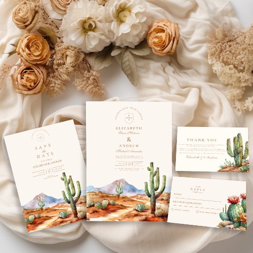 Watercolor Cactus Wüste Landscape Wedding Einladung