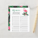 Das Design der Baby-Dusche ist mit rosa Flamingo mit üppig grünen Palmenblättern und tropischen Hibiskus-Blume ausgestattet. "Aloha Baby" Ein tropisches Blumenmuster mit schwarzer Hintergrundfarbe zieht die Rückseite der Karte hoch.