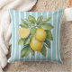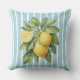 Watercolor Lemons on Blue Striped Background Kissen