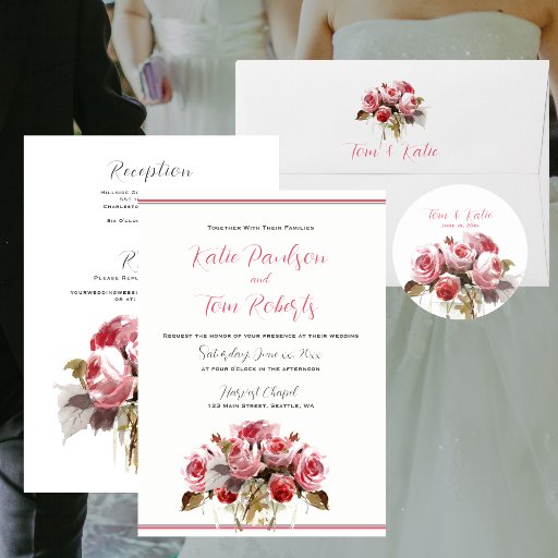 Watercolor Rose Bouquet Wedding ProgrammWatercolor Rose Bouquet Wedding Programm (Vorderseite)Watercolor Rose Bouquet Wedding Programm (Rückseite)