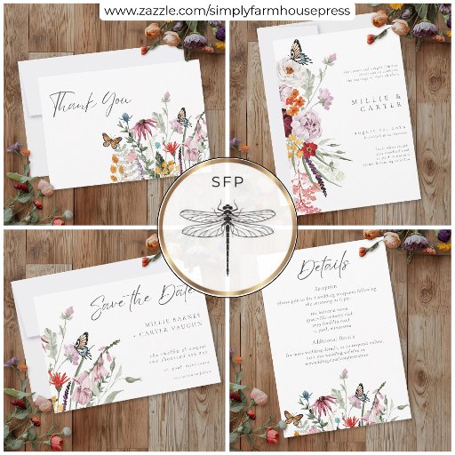 Watercolor Wildflower Butterfly Modern WeddingDesignt von Kathe Santillo