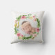 Watercolor Wreath erröten rosa personalisiertes Fotografiekissen. Personalisiertes Babygeschenk in Grünem, in rosa, Pfirsich und blauen inspirierten Farbentwurf. Mit Raum für einen Namen und ein Bild.