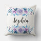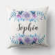 Throwkissen mit romantischem blauer u. lila Watercolor Blumenwreathentwurf und kundengerechtem Namen oder Monogramm.