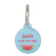 Desteis Cartoon Illustration einer köstlichen Wassermelonenfrucht auf blauem Hintergrund. Auf der Rückseite befinden sich personalisierbare Textbereiche für den Namen des Tieres und für die Telefonnummer des Besitzers.