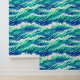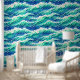 Ideal für jeden Strandbetrieb, Küstensterrant, Hotels an der Küste, Lodges, Resorts und Chalets, dieses dunkelblaue und türkisfarbene Blau, das mit weißen Meereswellen-Wandgemälde vermischt wird, verwandelt jedes Zimmer. Bringen Sie den Strand drinnen, mit diesem modernen und trendigen nahtlosen Muster, das leicht zu schälen ist und an glatten und strukturierten Wänden festhält.