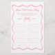 Fügen Sie Ihrer Babydusche eine schöne Touch mit diesem Personalisierten Pink Coquette Bow Baby Shower Guess The Age Game! Es ist das perfekte Baby-Duschspiel für ein pinkfarbenes Baby-Bogen-Duschthema, bei dem lassend Gäste Spaß haben und das Alter des Kindes in charmanten Fotos erleben. Ideal für pinkfarbene Babydusche oder ein Bugs-Party, dieses Spiel wird jedem Coquette Baby Dusche Thema ein süßes, stilvolles Element hinzufügen. Entdecken Sie einzigartige Baby-Dusche-Spielideen, um Ihre Veranstaltung unvergesslich zu machen!