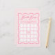 Machen Sie Ihre Veranstaltung unvergesslich mit dem Personalisierten Wavy Pink Bow Brautparty Bingo Spiel! Perfekt für die Liebe ist in der Luft Brautparty Ideen und valentines Brautparty Ideen, dieses Spiel ergänzt alle valentines Brautparty Thema. Sein charmantes Design Anzug eine rosa Brautparty-oder rosa Brautparty-Ideen, die perfekt mit einer Bindung der Knoten Brautparty-Thema oder ist die Kopplung der Knoten Brautparty Thema. Fügen Sie Spaß zu Ihrem Kuss die vermisste Abschiedszeit Party, Liebe ist im Blütenthema Brautparty, oder hübsch in rosa Junggeselinnen-Abschied. Ideal für einen rosa Junggeselinnen-Abschied!