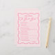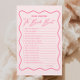 Feiern Sie mit dem "Personalisierten Wavy Pink Brautparty Who Knows the Bride Best"-Spiel, perfekt für die Liebe ist in der Luft Brautparty-Ideen und Valentins Brautparty-Ideen. Mit dem Brautparty des Valentiner Spiels ergänzt dieses Spiel alle Ideen aus rosa Brautparty oder rosa Brautparty. Ideal, um das Thema des Knotens zu küssen, oder das Thema des Knotens zu küssen, ist es eine lustige Ergänzung zum Küssen der Brautparty-Abschiedsfeiern, Liebe ist im Brautparty-Thema Blüte, oder ein hübsch in rosa Junggeselinnen-Abschied und rosa Junggeselinnen-Abschied.