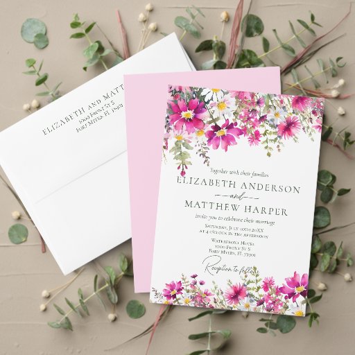 Bright Pink Wildflowers Boho WeddingDesignt von Margarita A