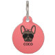 Investieren Sie in die Sicherheit und den Stil Ihres französischen Bulldoggen, indem Sie ihnen ein eigenes Hundekennzeichen geben. Dieses Hundeschild für Franken zeigt eine niedliche Darstellung eines braunen französischen Bulldoggen, der einen modischen rosa Bogen und Kragen mit einer schwarzen Aviatorsungbrille spielt. Auf der Vorderseite ist Platz, um den Namen Ihres Bulldoghundes und auf der Rückseite die Kontaktdaten hinzuzufügen. Hintergrundfarbe, Textfarbe und Schriftart können geändert werden.