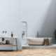 Weich-grau-blau mit hellweißen Lochkreisen Tapete