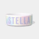 Trendy Bowl mit einem weichen pastellfarbenen Regenbogen-Hintergrund und dem Namen Ihres Haustieres in lila Licht.
